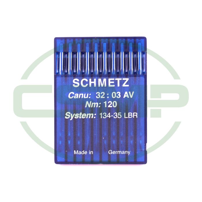 Schmetz 32:03AV1 - 134-35 LBR - NM 120 / Size 19 - LBR (Wide reverse twist point) Packet of 10 Needles.