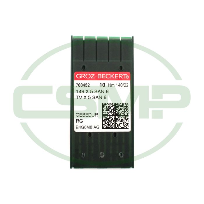 Groz Beckert - 149X5 SAN 6 GEBEDUR - NM 140 / Size 22 - RG (Normal round point with small ball) GEBEDUR™ Packet of 10 Needles.