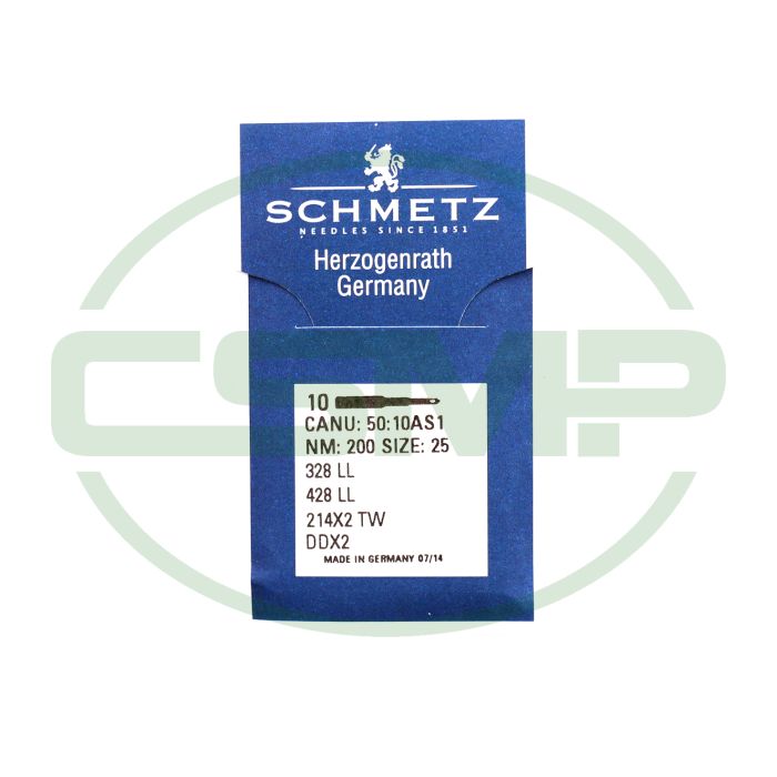 Schmetz 50:10AS1 - 328 LL, 214X2 TW, DDX2 - NM 200 / Size 25 - LL (Twist point) Packet of 10 Needles.