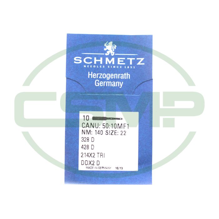 Schmetz 50:10MF1 - 328 D, 214X2 TRI, DDX2 D - NM 140 / Size 22 - D (Triangular point) Packet of 10 Needles.