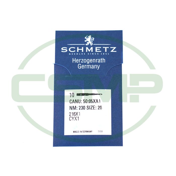 Schmetz 50:05XA1 - 216X1, CYX1 - NM 230 / Size 26 - STANDARD (Normal round point) Packet of 10 Needles.