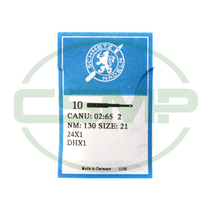 Schmetz 02:65 1 - 24X1, DHX1 - NM 130 / Size 21 - STANDARD (Normal round point) Packet of 10 Needles.