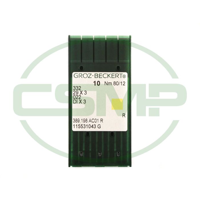 Groz Beckert - 332/29X3/022/DIX3 - NM 80 / Size 12 - R (Regular Round Point) Packet of 10 Needles.