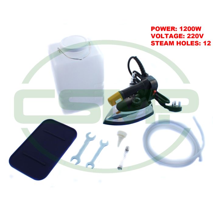 - 220V, 1200W Gravity-Fed Steam Iron.