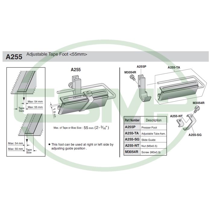 Description / A255 ADJUSTABLE TAPE FOOT SUISEI UP TO 55MM