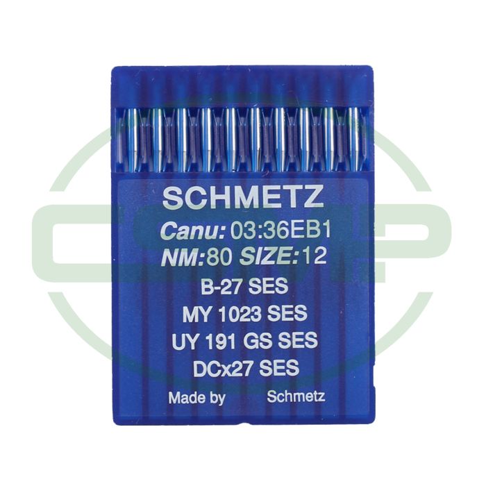 Schmetz 03:36EB1 - B-27 SES, MY 1023 SES, UY 191 GS SES, DCX27 SES, RIM 27 SES - NM 80 / Size 12 - SES (Light ball point) Packet of 10 Needles.