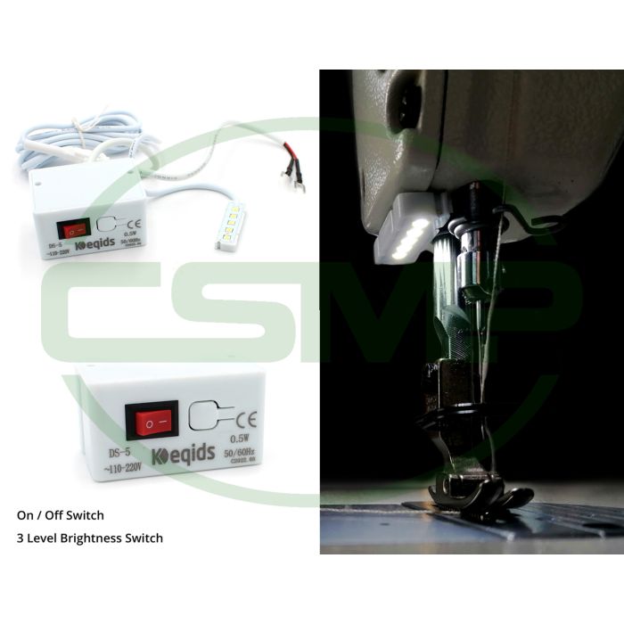 This is a high-performance SMD-LED (Surface Mouted - LED) lamps with 3-level adjustable brightness and memory function. Fixes to the sewing machine with hi-performance magnetic mount. The theoretical service-life of this lamp is around 60,000 hours and has a approx. energy saving of 90% compared to traditional fluorescent lights.
