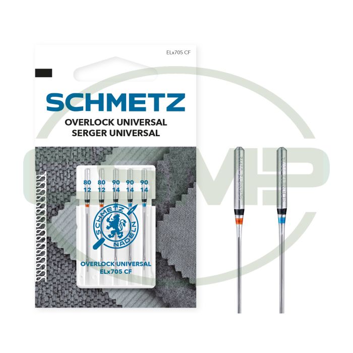 Schmetz Serger Universal CF (Chrome Finish) Pack of 5 Needles (Carded) Assorted Size - 2x NM 80, 3x NM 90.