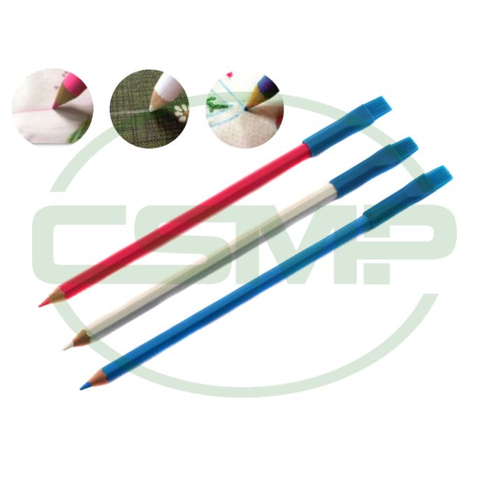 The marking material is protected by the wooden pencil covering and used in much the same way as conventional tailors chalk.