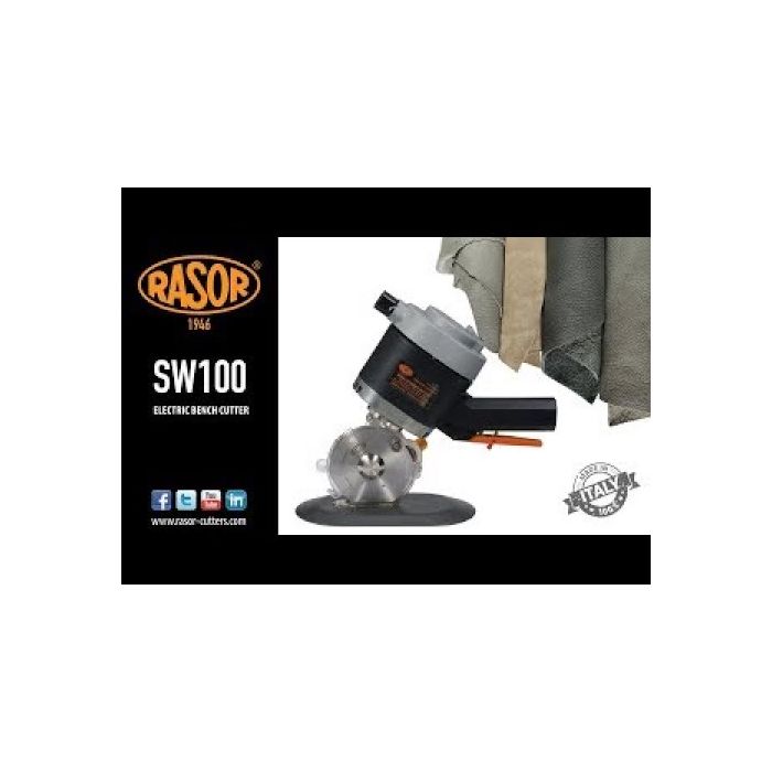 The Rasor SW100 is a lightweight (3 kg), high-performance bench cutter widely used in textile and technical fabric industries for over 40 years. Its 100 mm six-edge blade, combined with a counterblade, delivers precise, fray-free cuts up to 35 mm thick.