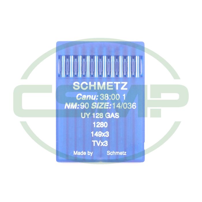 Schmetz 38:00 1 - UY 128 GAS, 1280, 149X3, TVX3 - NM 90 / Size 14 - STANDARD (Normal round point) Packet of 10 Needles.